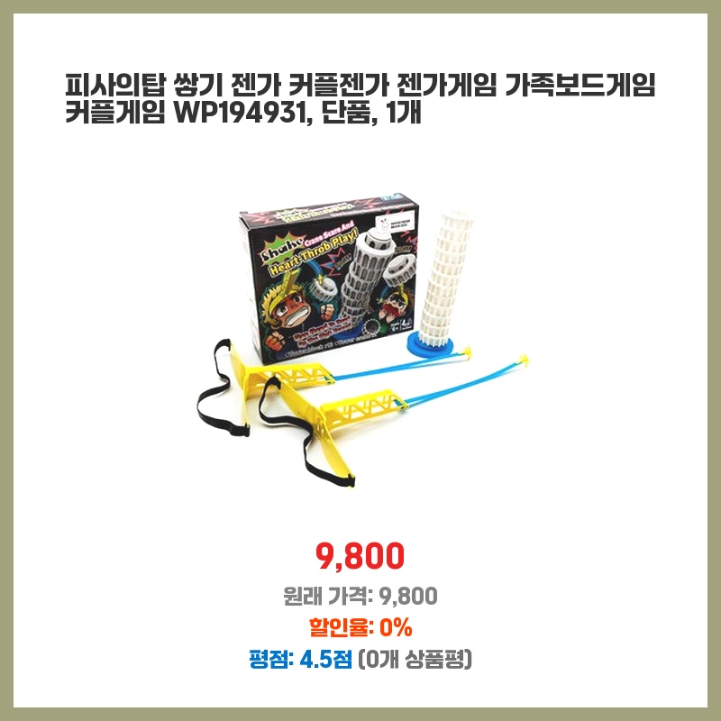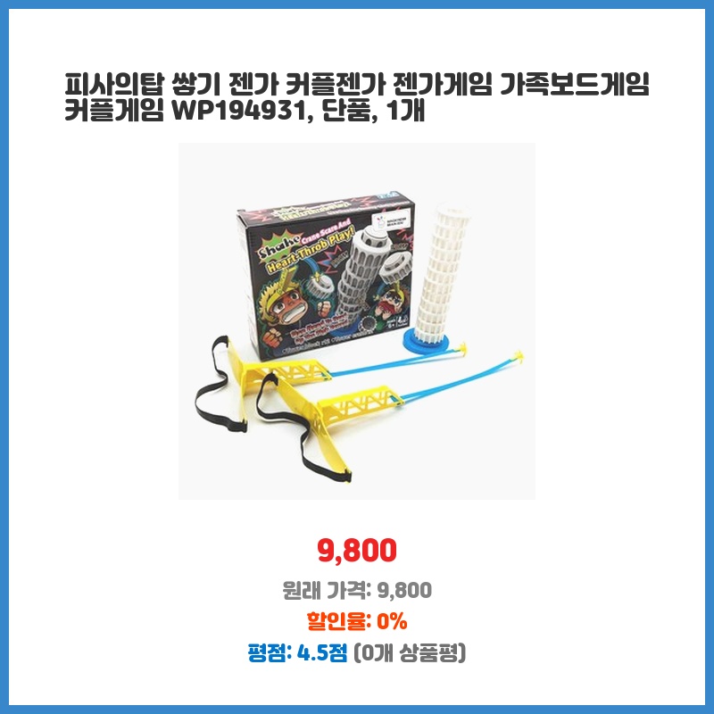 피사의탑 디자인이 정말 예쁘고, 블록의 재질도 튼튼해서 만족스럽습니다. 커플끼리 오붓하게 즐기기에 딱 좋은 게임이에요! 재밌게 잘 사용하고 있습니다.