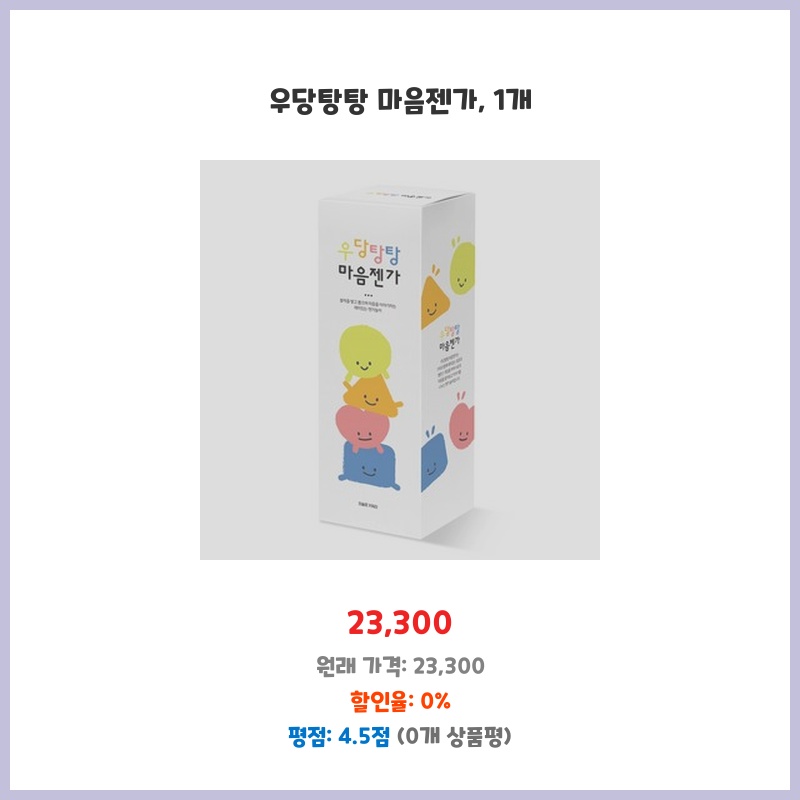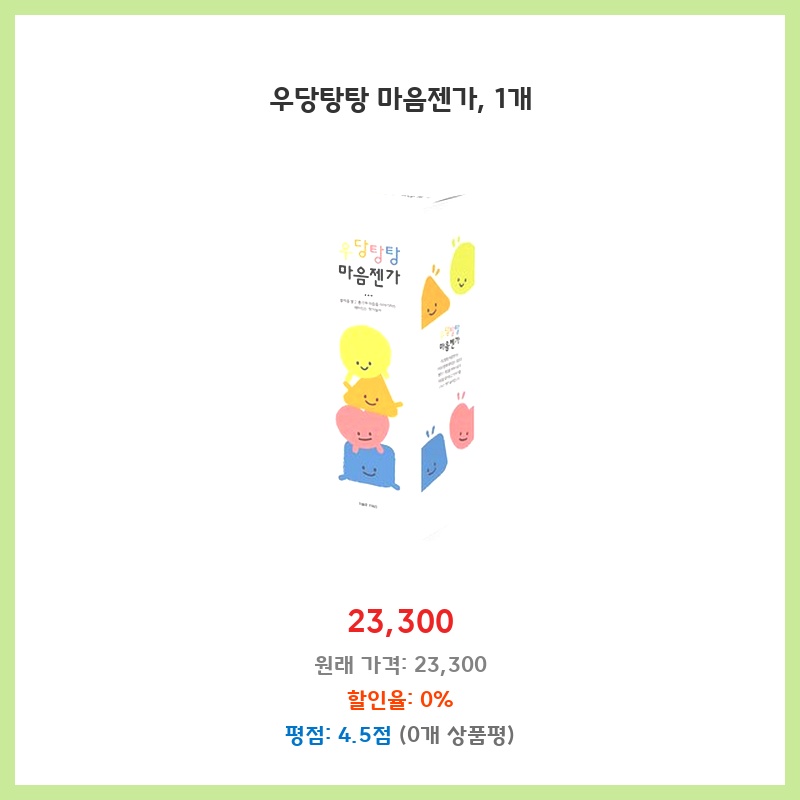 친구들과 즐거운 시간을 보낼 새로운 보드게임이 필요했습니다. 우당탕탕 마음젠가는 긴장감과 재미를 동시에 제공하며, 다양한 연령대가 함께 즐길 수 있다는 점이 매력적이었습니다. 블록의 견고함과 디자인도 마음에 들었습니다.