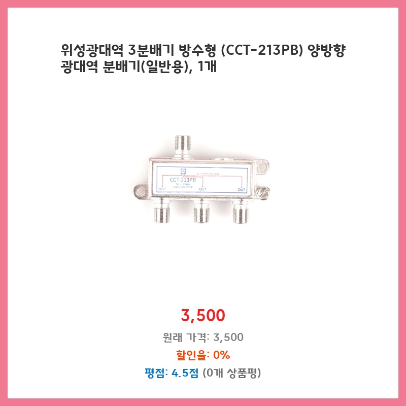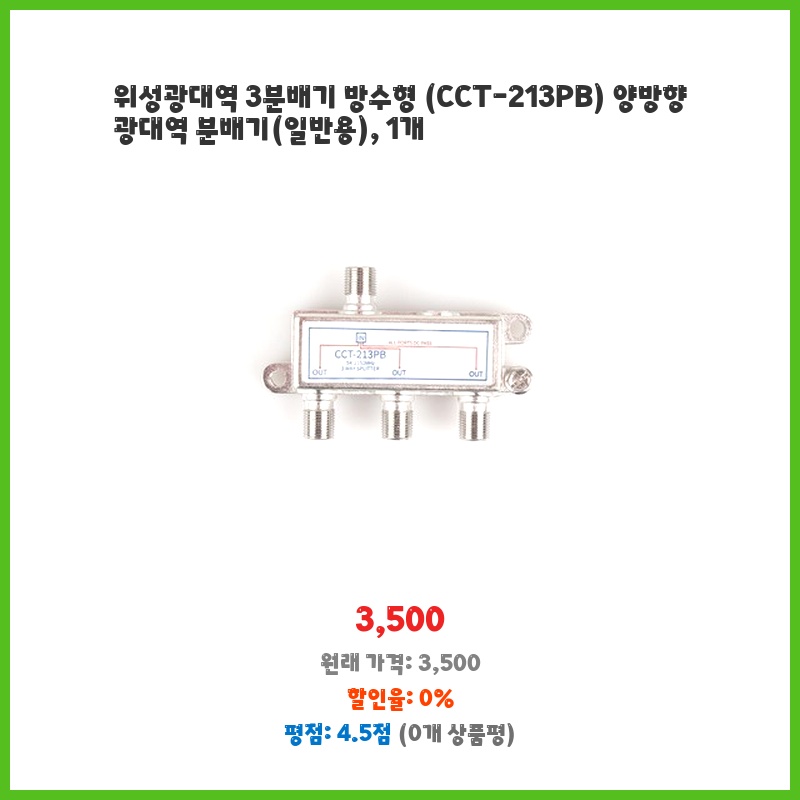 위성광대역 3분배기 방수형 (CCT-213PB) 양방향 광대역 분배기(일반용), 1개
