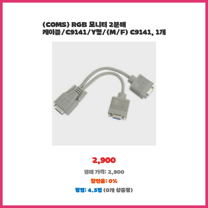 두 대의 모니터를 하나의 RGB 포트에 연결해야 해서 구매했습니다. 가격도 저렴하고 Y형 분배기라 연결이 간편해 보여 선택했습니다. 설치 후 문제없이 잘 작동합니다.