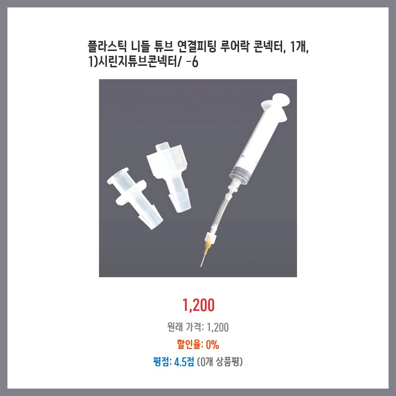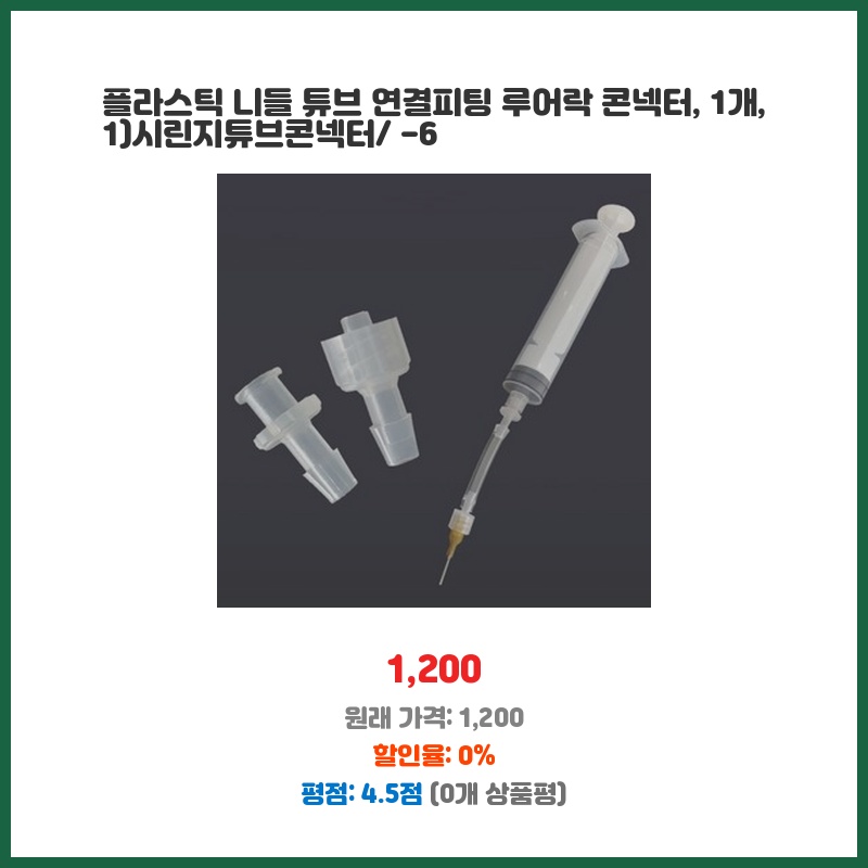 시린지와 튜브를 안전하고 깔끔하게 연결할 수 있어 실험이나 의료 현장에서 유용합니다. 루어락 방식이라 누수 걱정 없이 안정적인 연결이 가능하며, 플라스틱 소재라 일회용으로 사용하기 편리합니다. 가격도 합리적입니다.