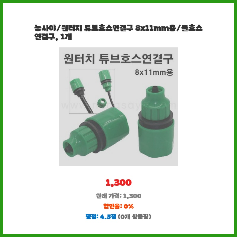 농사야/원터치 튜브호스연결구 8x11mm용/물호스 연결구, 1개