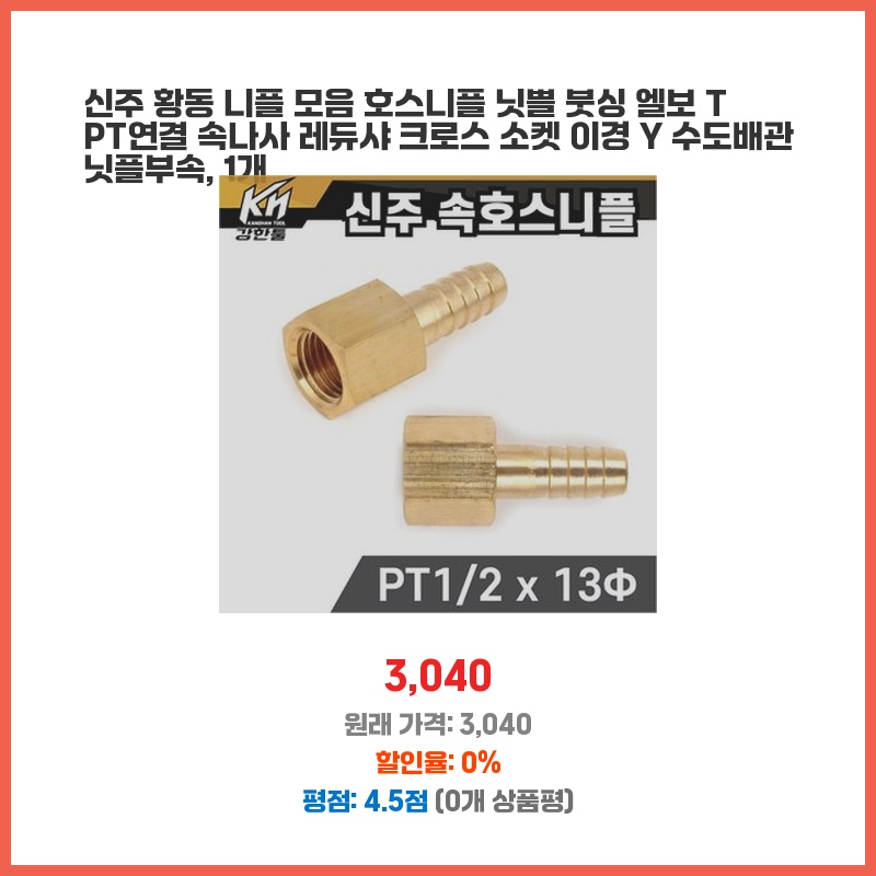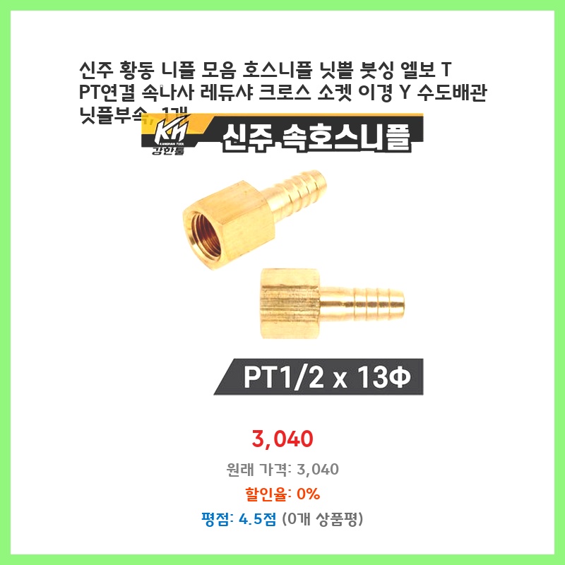 신주 황동 니플 모음 호스니플 닛쁠 붓싱 엘보 T PT연결 속나사 레듀샤 크로스 소켓 이경 Y 수도배관 닛플부속, 1개
