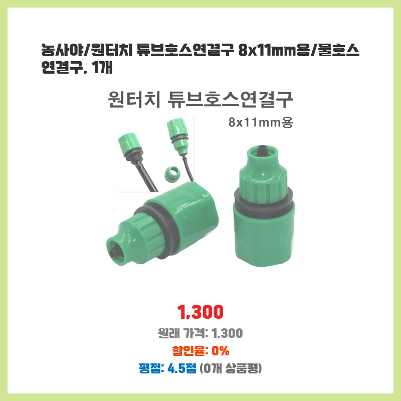 낡은 호스 연결구를 교체하기 위해 구매했습니다. 원터치 방식이라 편리하고, 8x11mm 호스에 딱 맞는 사이즈라 연결이 용이했습니다. 가격도 저렴해서 부담 없이 사용할 수 있었습니다.