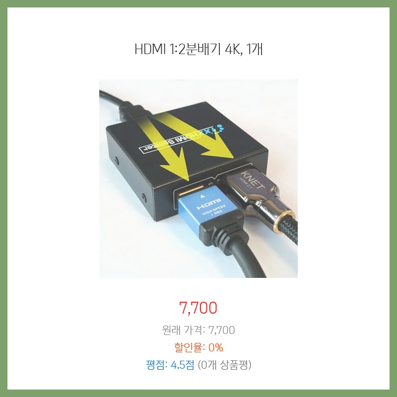 두 대의 모니터에 동시에 4K 영상을 출력해야 해서 구매했습니다. 가격도 저렴하고 설치도 간편해서 만족스러워요. HDMI 케이블만 준비하면 바로 사용 가능했습니다.
