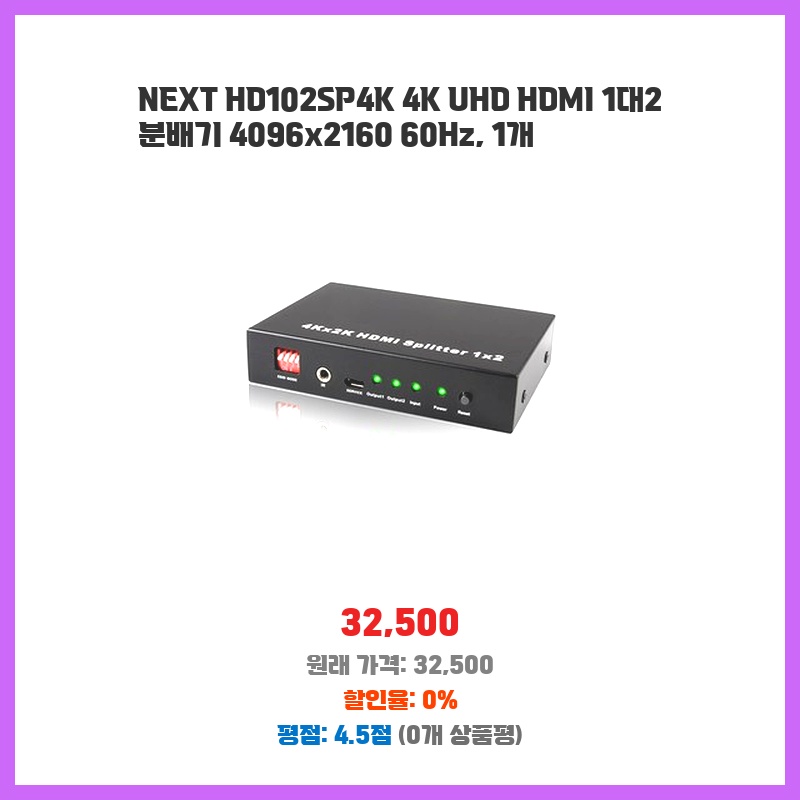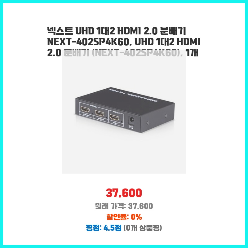 NEXT HD102SP4K 4K UHD HDMI 1대2 분배기 4096x2160 60Hz, 1개