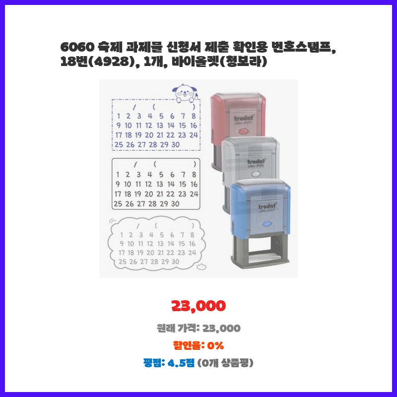 6060 숙제 과제물 신청서 제출 확인용 번호스탬프, 18번(4928), 1개, 바이올렛(청보라)