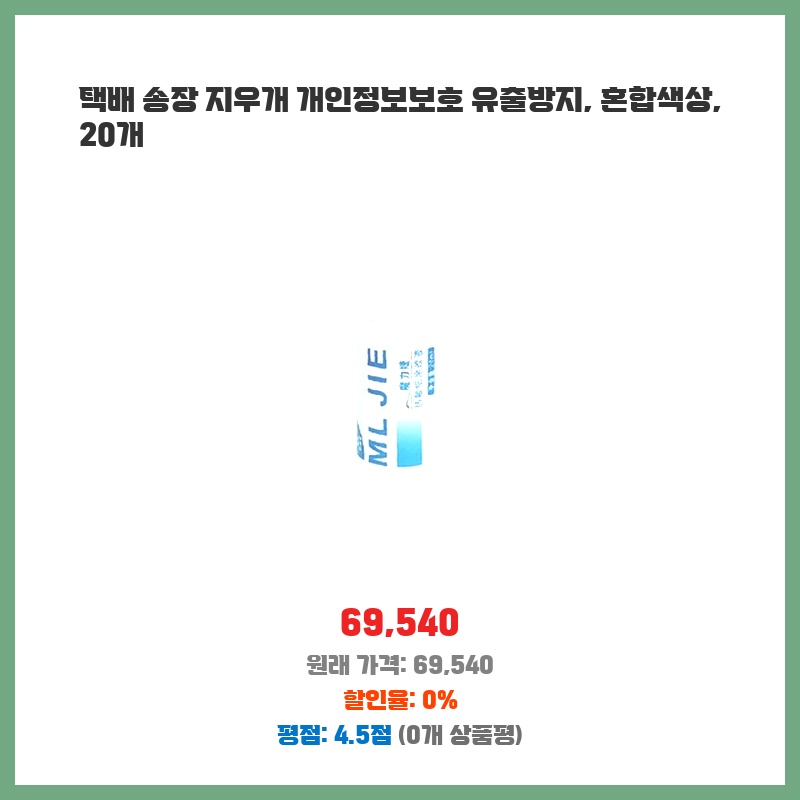 개인정보 유출이 걱정되어 택배 송장을 지우는 습관이 생겼는데, 20개들이라 오래 쓸 수 있고 혼합색상이라 마음에 들었습니다. 일회용이 아닌 재사용 가능한 제품이라 경제적이고 환경에도 좋을 것 같아 구매했습니다.