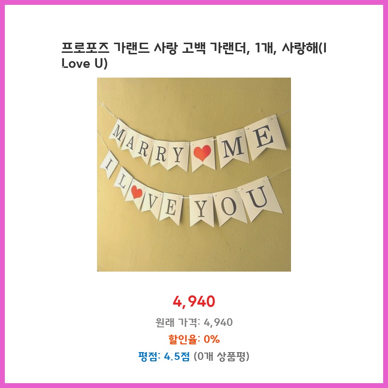 프로포즈 준비하면서 특별한 분위기를 내고 싶어서 구매했습니다. 사랑해 문구가 크고 깔끔하게 적혀 있어서 마음에 들었고, 가격도 부담스럽지 않았습니다. 사진으로 보는 것보다 실제로 받아보니 더 예뻤습니다.