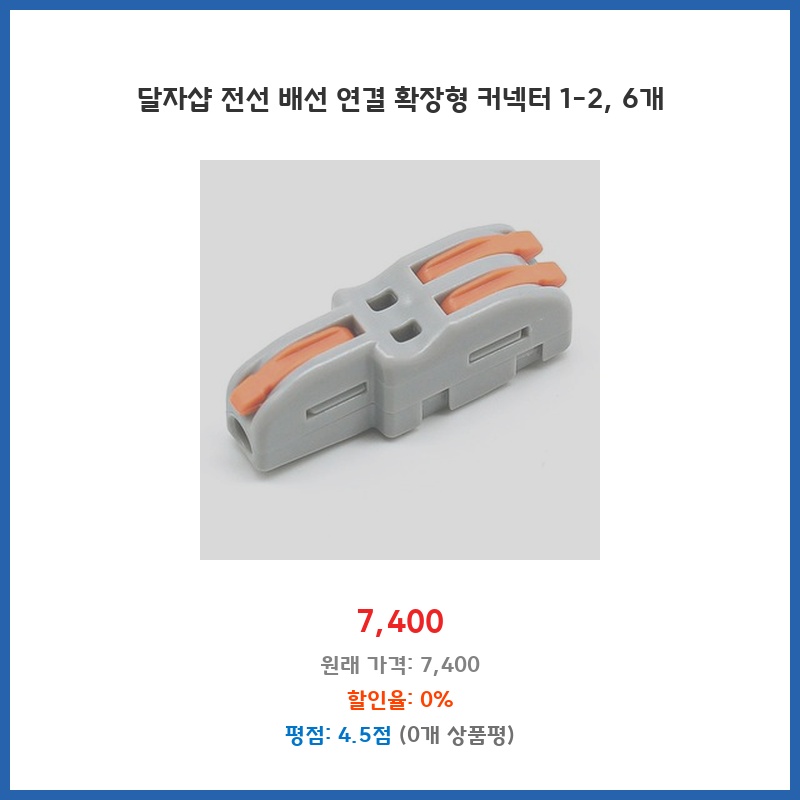 달자샵 전선 배선 연결 확장형 커넥터 1-2, 6개