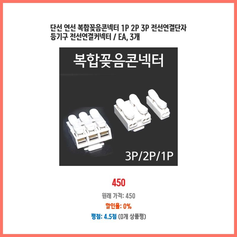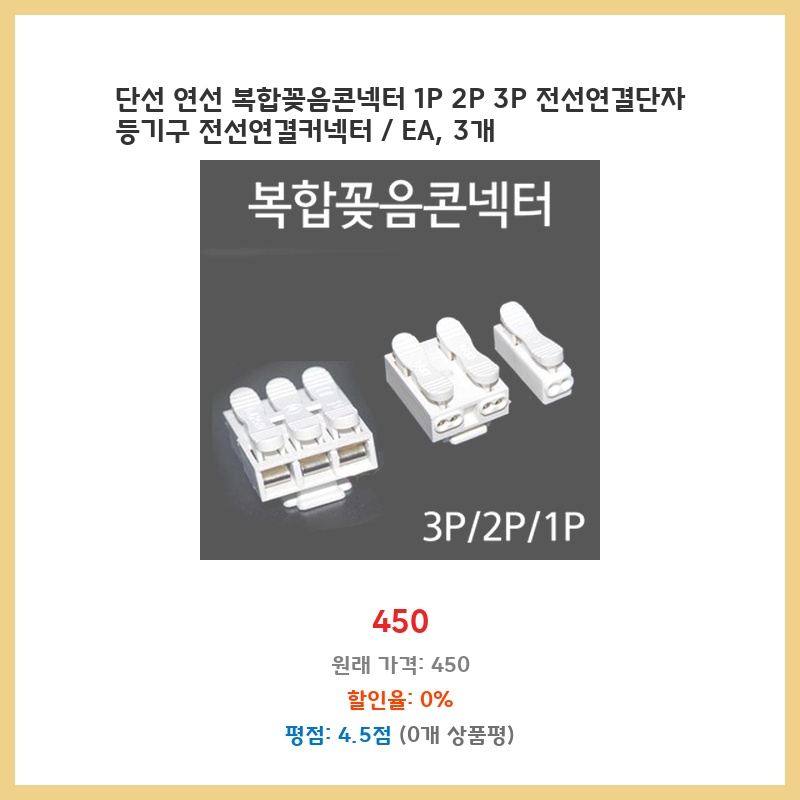 집에서 간단한 전기 작업을 자주 하는데, 기존 단자대가 불편해서 새로운 연결 방식을 찾던 중 이 제품을 발견했습니다. 단선, 연선 모두 사용 가능하고 1P, 2P, 3P 다양하게 있어 편리할 것 같아 구매했습니다. 깔끔한 연결이 가능할 것으로 예상됩니다.
