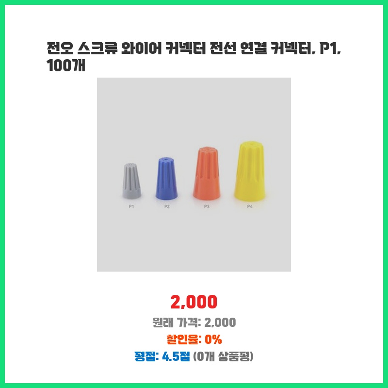 전오 스크류 와이어 커넥터 전선 연결 커넥터, P1, 100개