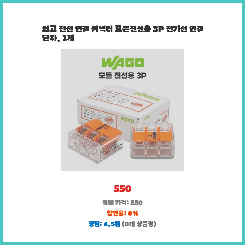 전선 연결 작업이 잦아 편리한 커넥터가 필요했습니다. 3P라 다양한 전선에 사용 가능하고, 가격도 저렴해서 구매했습니다. 깔끔한 연결 상태를 유지할 수 있어 만족스럽습니다.