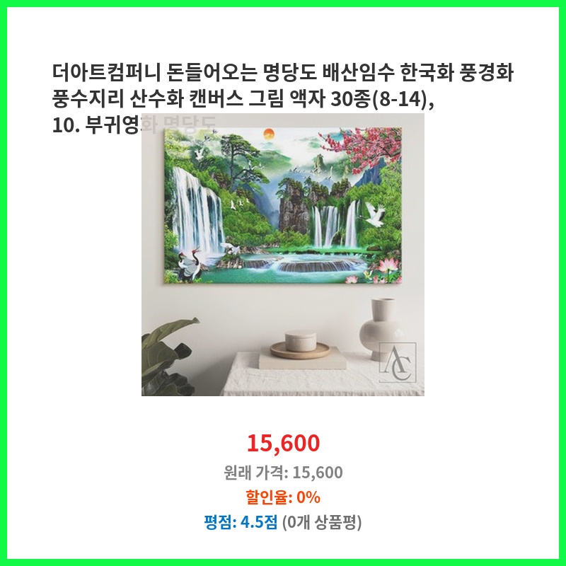 집들이 선물로 한국화 그림을 찾던 중 가격 대비 품질이 좋아 보여 구매했습니다. 30종이나 되는 다양한 디자인 중 선택할 수 있는 점도 좋았습니다. 배산임수 그림이 집안 분위기를 더욱 밝고 편안하게 만들어 줄 것 같아 기대됩니다.