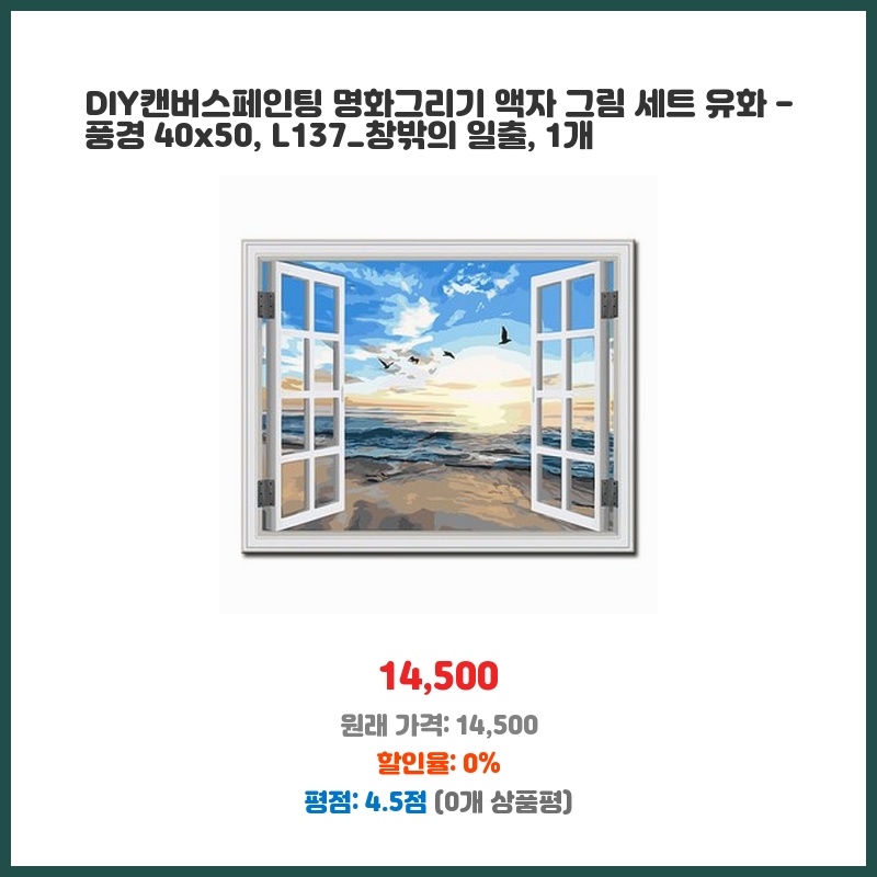 DIY캔버스페인팅 명화그리기 액자 그림 세트 유화 - 풍경 40x50, L137_창밖의 일출, 1개