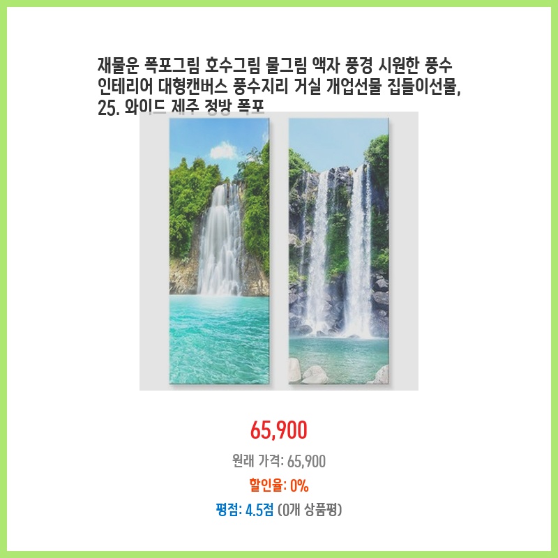 재물운 폭포그림 호수그림 물그림 액자 풍경 시원한 풍수 인테리어 대형캔버스 풍수지리 거실 개업선물 집들이선물, 25. 와이드 제주 정방 폭포