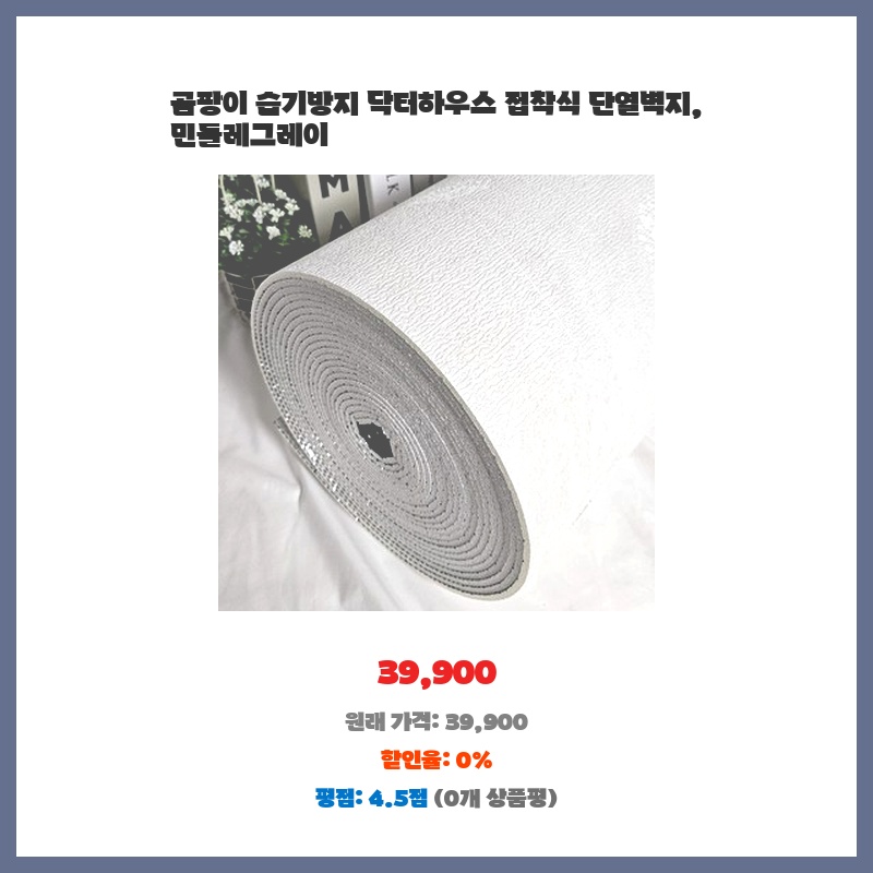 겨울철 찬바람과 결로 때문에 고민이었는데, 접착식이라 간편하게 붙이고 단열 효과도 좋다는 후기를 보고 구매했습니다. 곰팡이 방지 기능도 마음에 들었어요. 민들레그레이 색상도 예쁘네요.