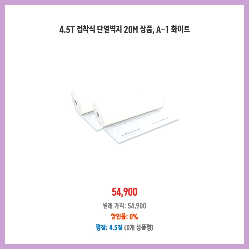 4.5T 접착식 단열벽지 20M 상품, A-1 화이트