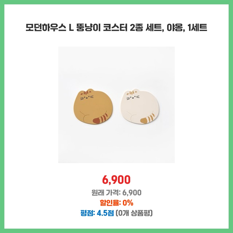 모던하우스코스터, 뚱냥이코스터, 고양이코스터, 코스터세트, 야옹이, 냥이용품, 2종세트