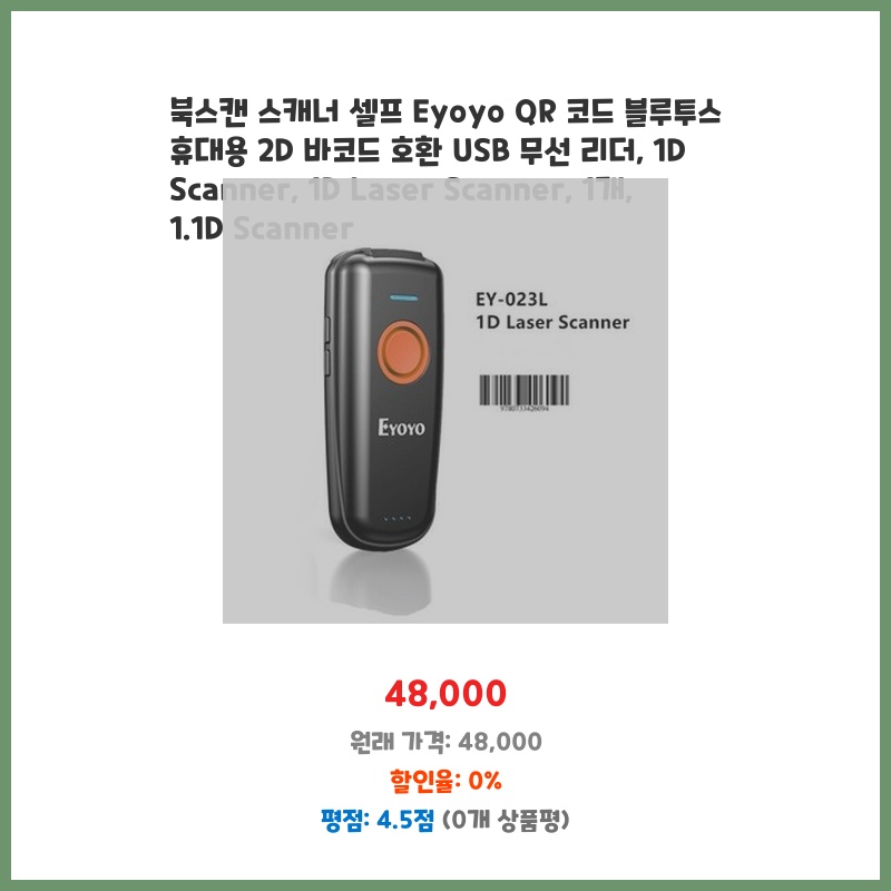 북스캔 스캐너 셀프 Eyoyo QR 코드 블루투스 휴대용 2D 바코드 호환 USB 무선 리더, 1D Scanner, 1D Laser Scanner, 1개, 1.1D Scanner