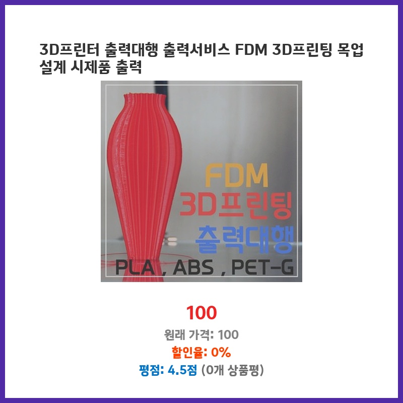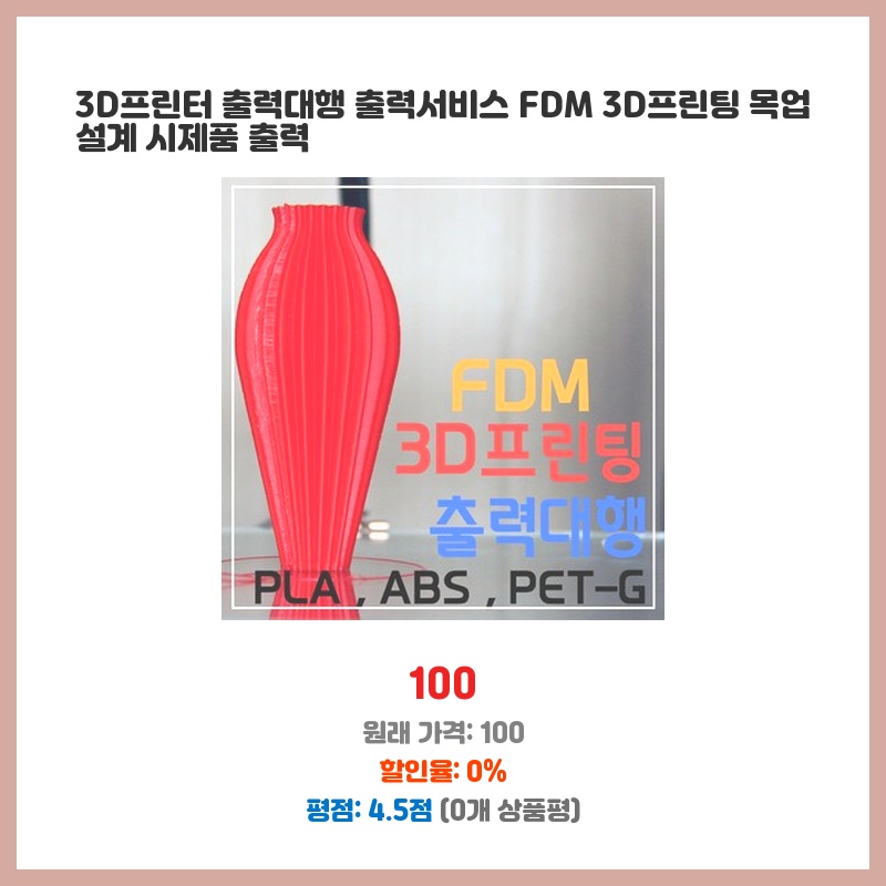 3D프린터 출력대행 출력서비스 FDM 3D프린팅 목업 설계 시제품 출력