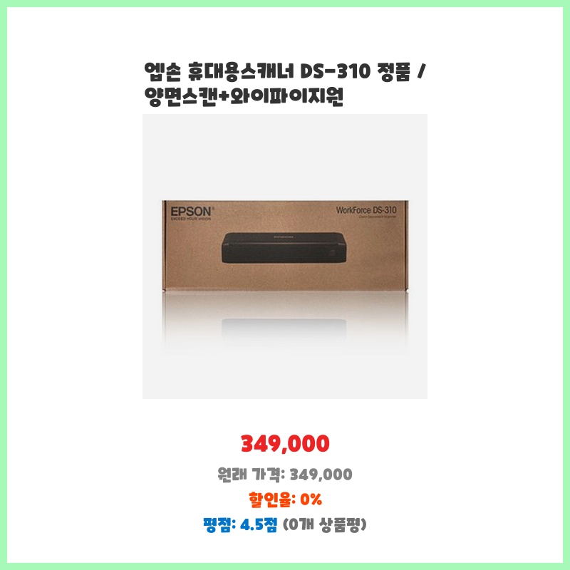 휴대성과 양면 스캔 기능이 중요했는데, DS-310은 크기가 작으면서도 빠르게 양면 스캔이 가능해 업무 효율이 크게 높아졌습니다. 와이파이 지원도 편리한 점입니다. 가격 대비 성능이 뛰어나 만족합니다.