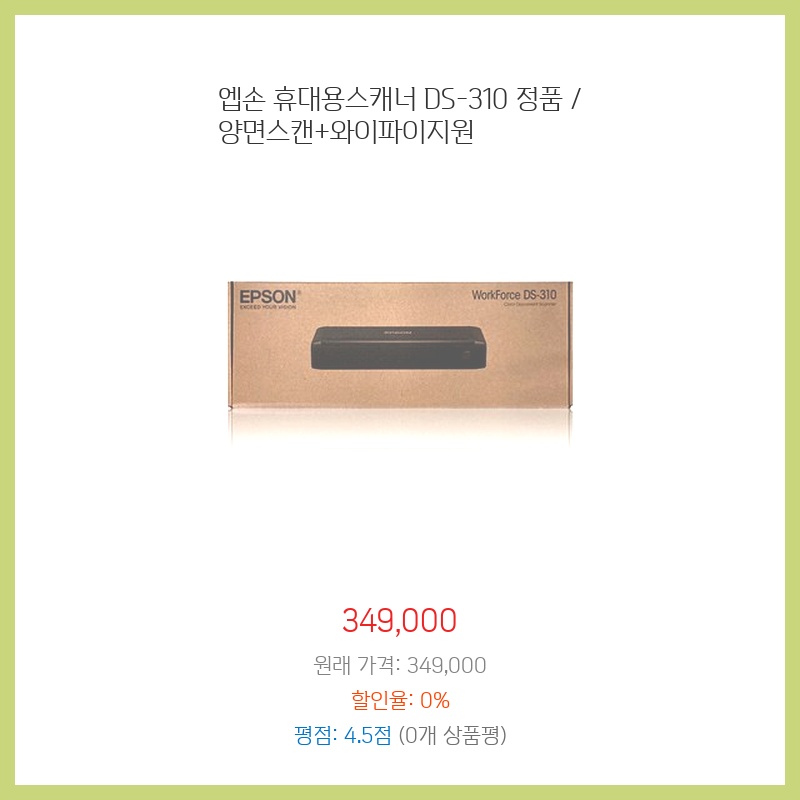 엡손 휴대용스캐너 DS-310 정품 / 양면스캔+와이파이지원