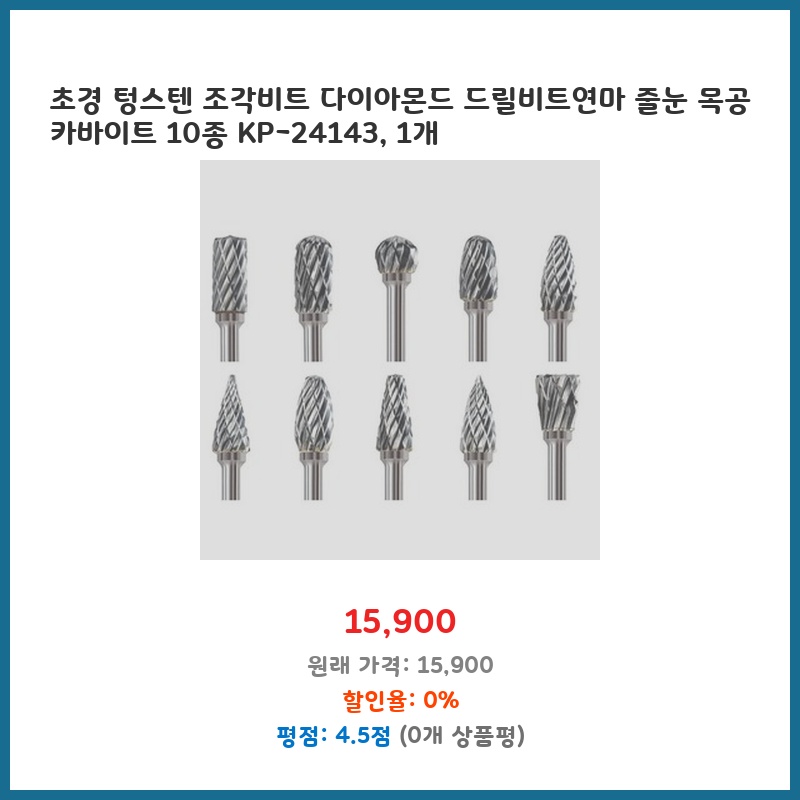 다양한 작업에 활용 가능한 10종 세트라 실용적이고, 초경 텅스텐 소재라 내구성이 좋아 오래 사용할 수 있을 것 같아 구매했습니다. 목공과 연마 작업에 필요한 비트가 모두 포함되어 있어 편리할 것으로 예상됩니다.