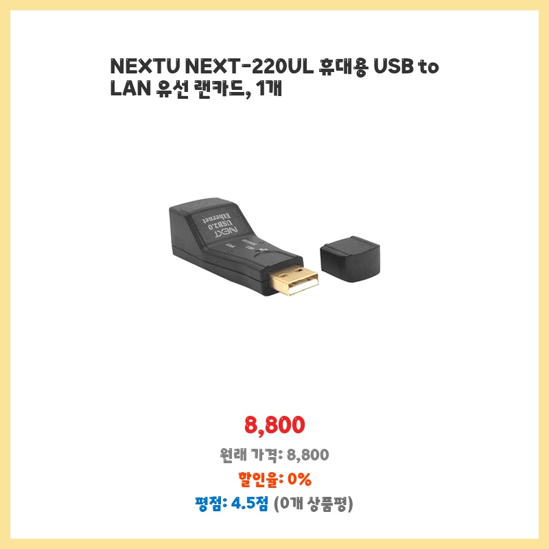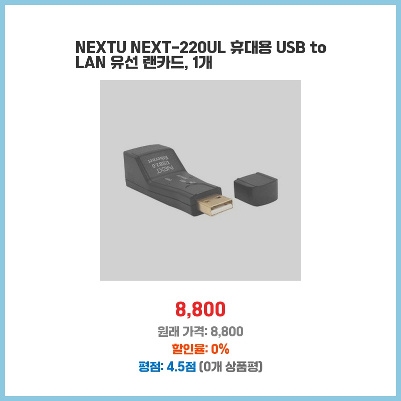 NEXTU NEXT-220UL 휴대용 USB to LAN 유선 랜카드, 1개