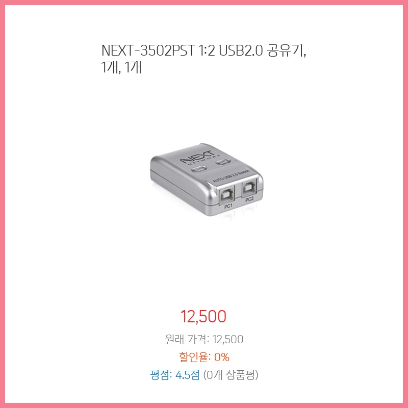 USB공유기, NEXT3502PST, USB20공유기, 공유기추천, 1대2공유기, USB허브, 데이터공유