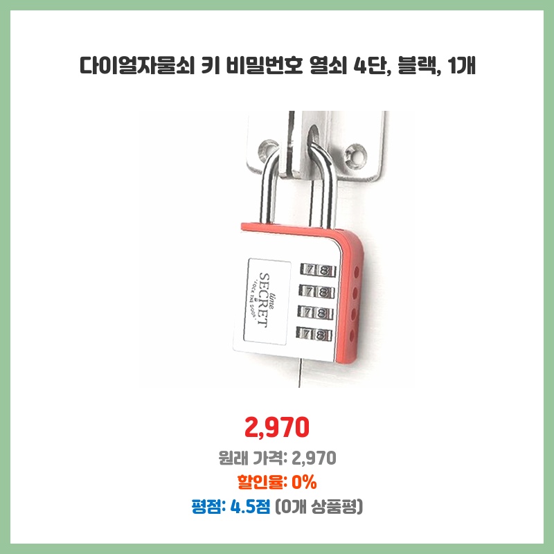 자전거에 부착할 안전한 자물쇠가 필요했습니다. 4단 다이얼 방식이라 번거롭지 않고, 키 관리의 불편함 없이 사용할 수 있어 구매했습니다. 블랙 색상도 마음에 들었습니다.