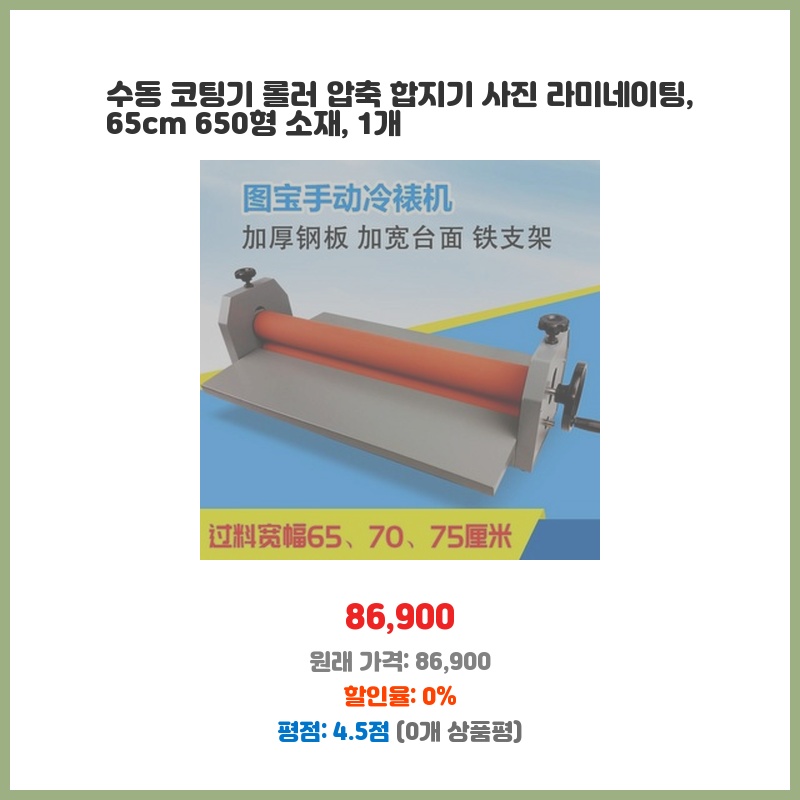수동 코팅기 롤러 압축 합지기 사진 라미네이팅, 65cm 650형 소재, 1개