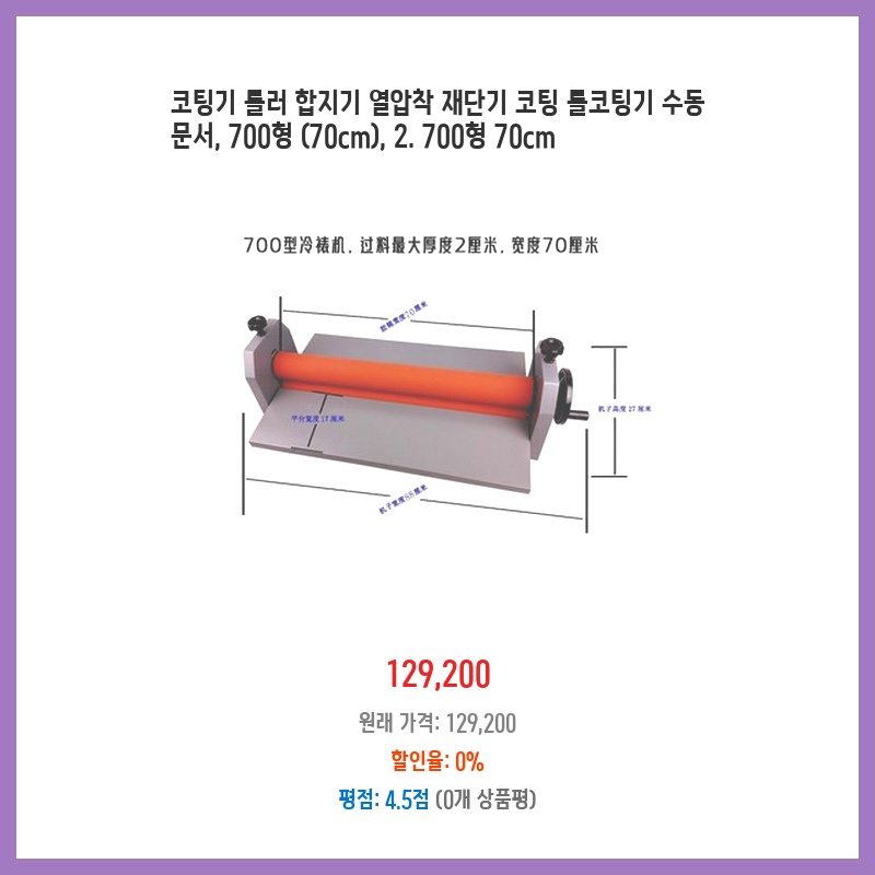 코팅기 롤러 합지기 열압착 재단기 코팅 롤코팅기 수동 문서, 700형 (70cm), 2. 700형 70cm