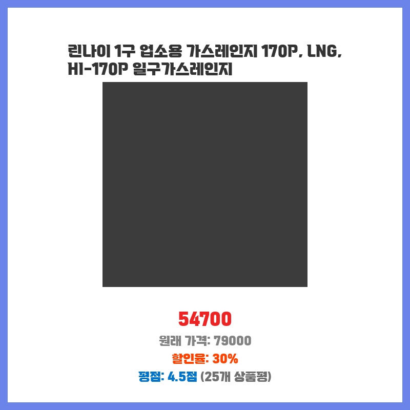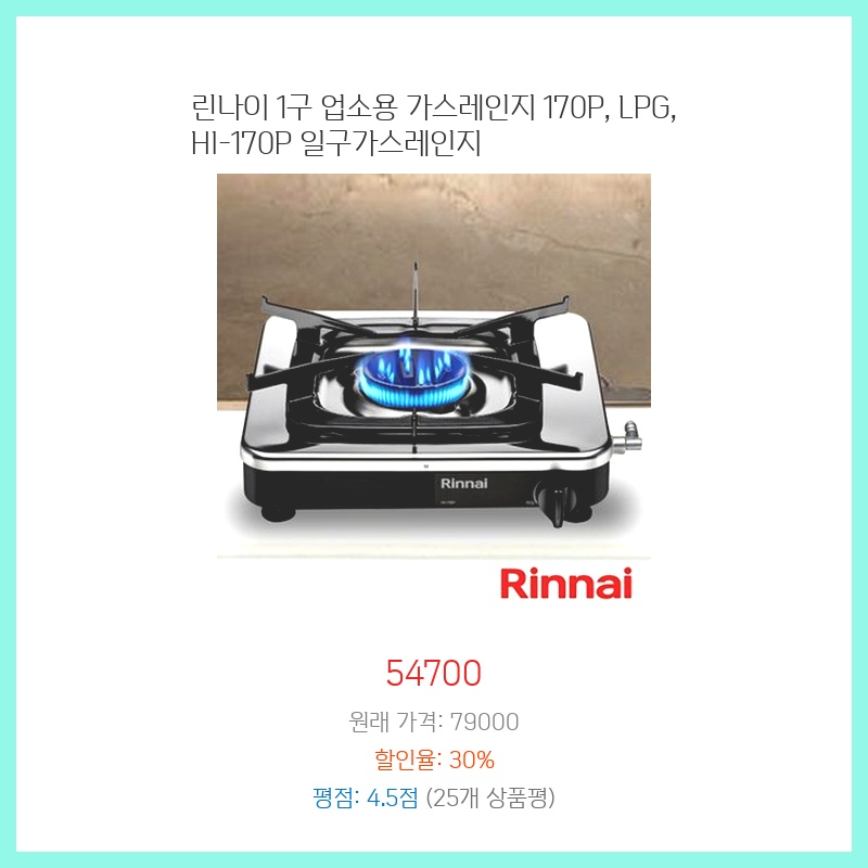 린나이가스레인지, 1구가스레인지, 업소용가스레인지, HI-170P, LPG가스레인지, 린나이170P, 가스렌지
