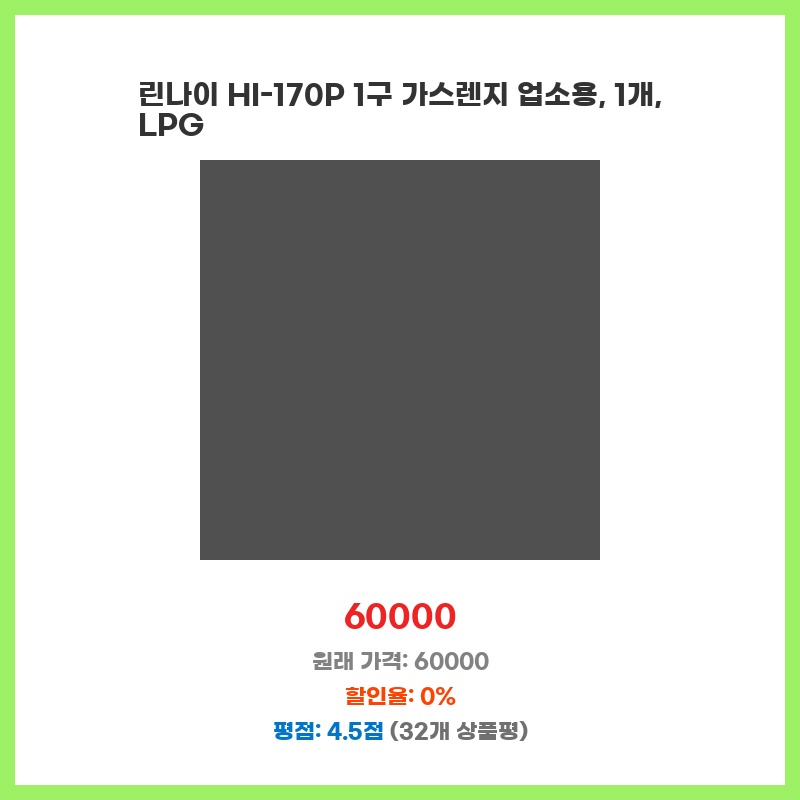 린나이 정품이라 믿을 수 있고, 1구라 공간 효율이 좋습니다. 가정용으로 사용하기에 적당한 크기와 출력이며, LNG 사용으로 편리합니다. 가격 대비 성능이 괜찮아 선택했습니다.