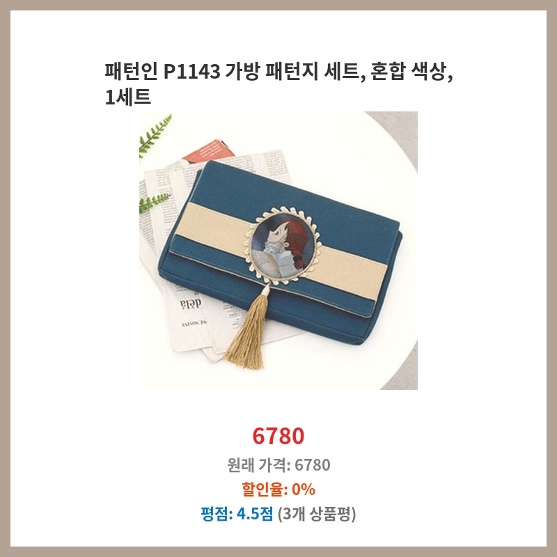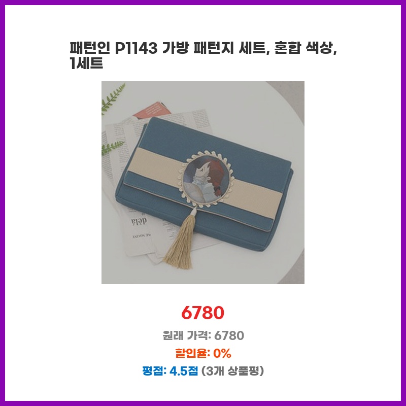 패턴인 P1143 가방 패턴지 세트, 혼합 색상, 1세트