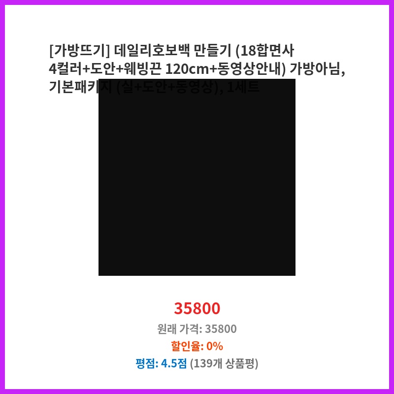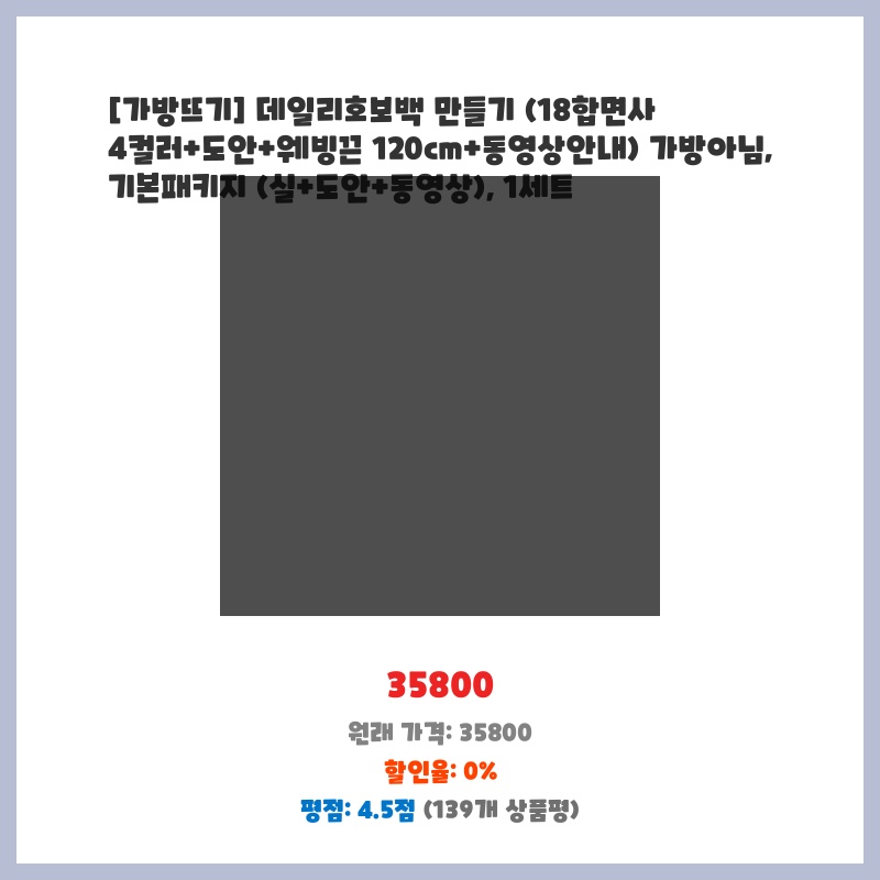 18합면사의 고급스러운 색감과 꼼꼼한 도안, 동영상 강좌까지 포함된 패키지라 가방뜨기 초보자도 쉽게 예쁜 호보백을 만들 수 있을 것 같아 구매했습니다. 필요한 재료가 모두 포함되어 따로 준비할 것이 없어 편리할 것 같습니다.