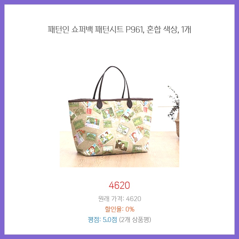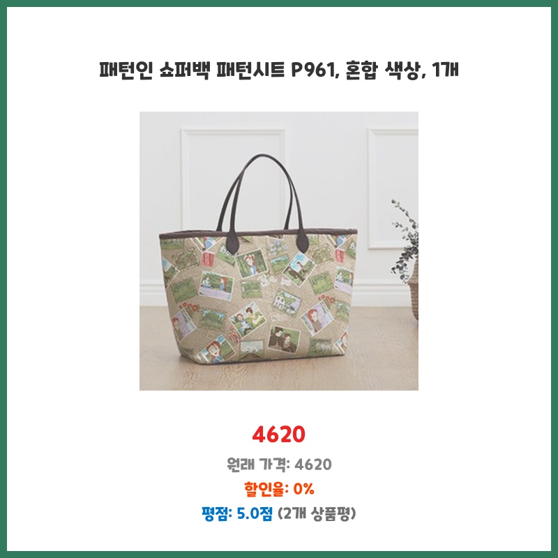 쇼퍼백, 패턴백, 패턴시트, P961, 혼합색상, 가방, 토트백
