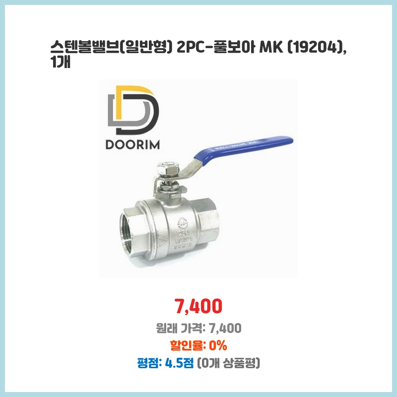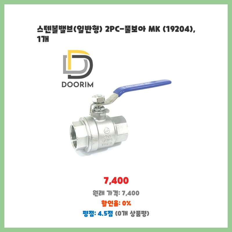 스텐볼밸브(일반형) 2PC-풀보아 MK (19204), 1개