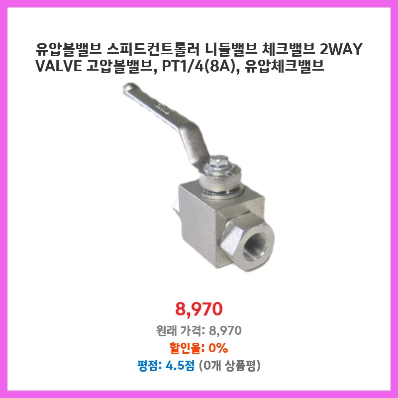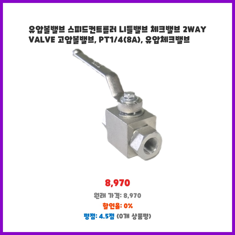소형 유압 시스템 작업에 필요한 밸브들을 한꺼번에 구매할 수 있어 편리했습니다. PT14 사이즈로 소형 설비에 적합하고, 체크밸브 기능까지 포함되어 있어 시스템 구성이 간편해졌습니다. 가격 대비 성능이 괜찮다고 생각합니다.