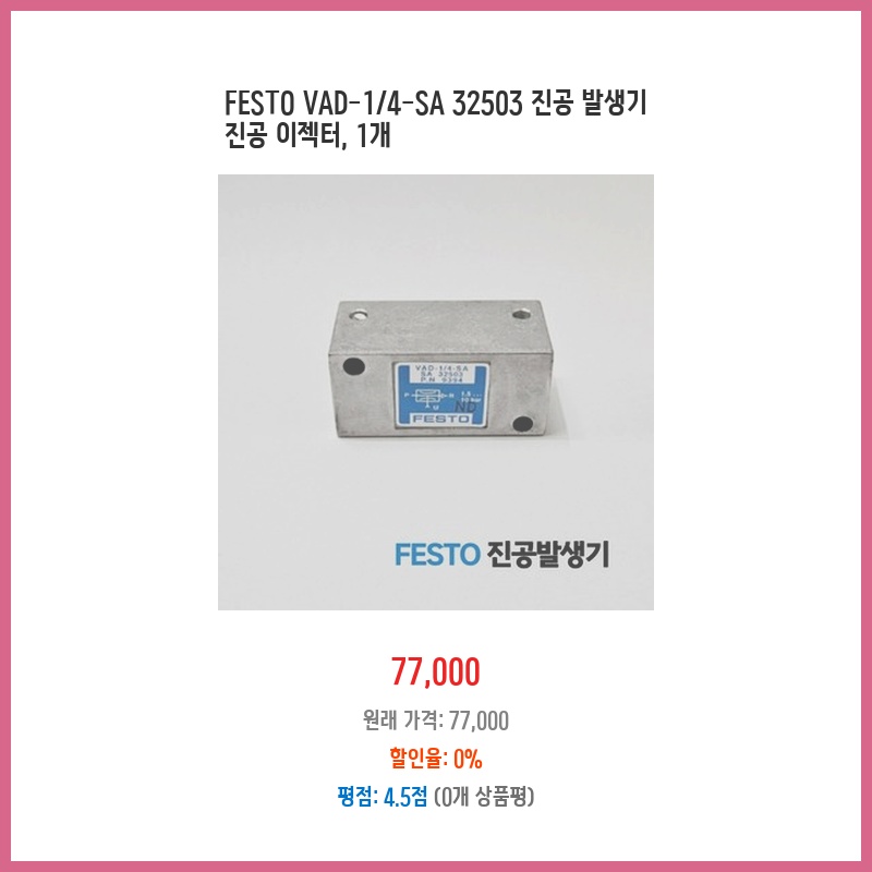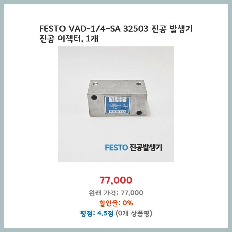 FESTO의 신뢰성 있는 브랜드와 견고한 내구성이 필요했습니다. 작고 효율적인 진공 발생기가 필요했고, VAD-14-SA 모델이 정확히 제 요구사항을 충족했습니다. 다른 제품들과 비교해 성능 대비 가격이 적절하다고 판단했습니다.