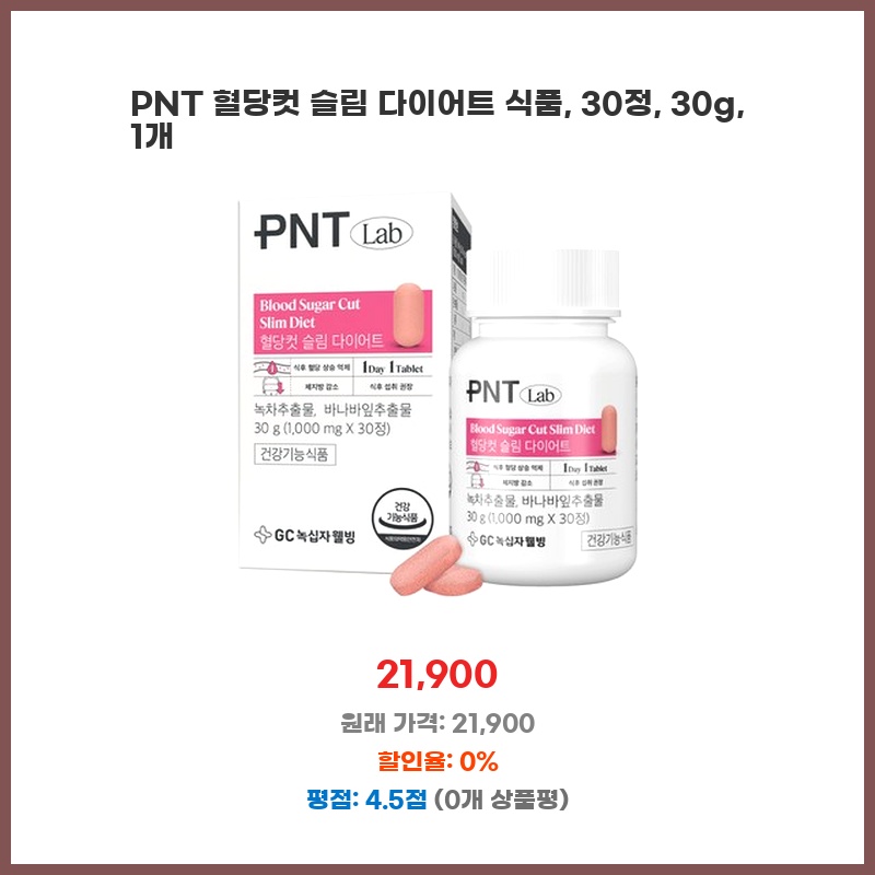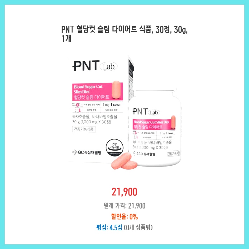 혈당 관리와 체중 감량을 동시에 고려하여 PNT 혈당컷 슬림 다이어트 식품을 선택했습니다. 30정이라는 적당한 용량과 휴대성이 편리해 보였고, 다른 제품들과 비교했을 때 가격 대비 효과가 좋아 보였습니다.