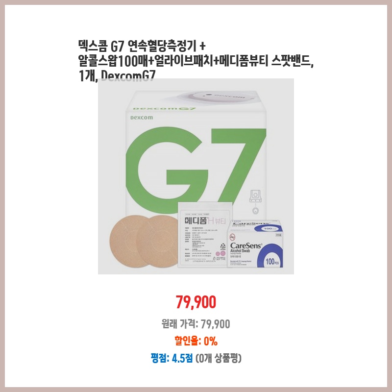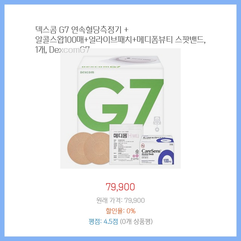 잦은 혈당 측정이 불편했는데, 덱스콤 G7로 지속적인 모니터링이 가능해져 편리해졌습니다. 알콜스왑과 패치까지 포함되어 바로 사용하기 좋았고, 정확도도 높아 만족스럽습니다.