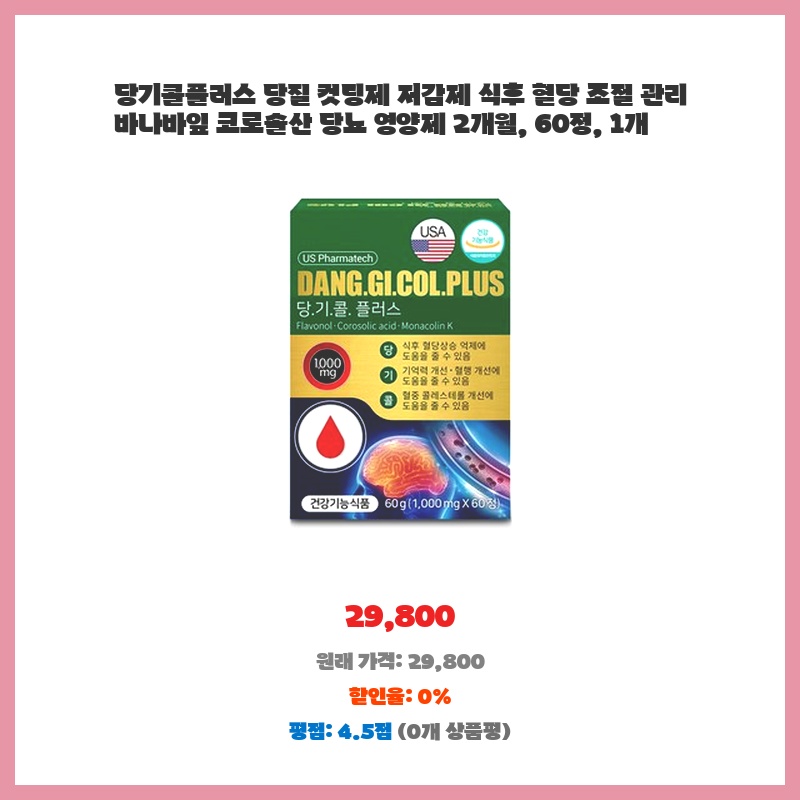 당기콜플러스 당질 컷팅제 저감제 식후 혈당 조절 관리 바나바잎 코로솔산 당뇨 영양제 2개월, 60정, 1개