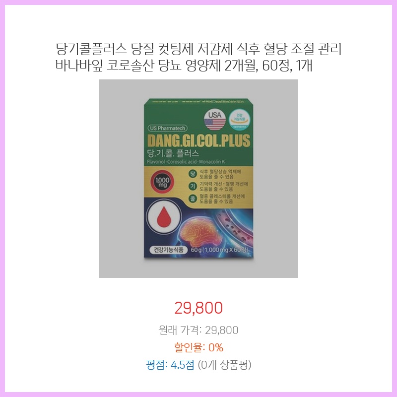 혈당 관리에 도움이 되는 바나바잎과 코로솔산 함유 제품이라 꾸준히 섭취하며 건강 관리를 하고 싶어 구매했습니다. 2개월 분량이라 부담 없고, 식후 혈당 조절에 효과가 있기를 기대합니다. 합리적인 가격도 매력적이었습니다.