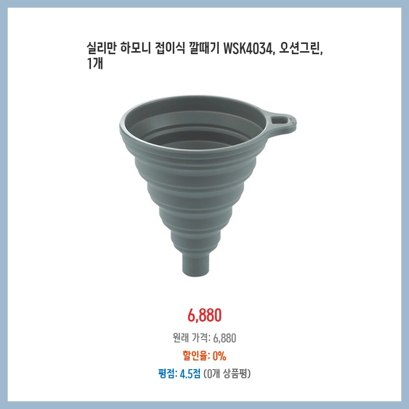 캠핑 갈 때마다 깔때기가 없어 불편했는데, 접이식이라 휴대성이 좋고 실리콘 소재라 깨질 염려 없어 구매했습니다. 오션그린 색상도 예쁘고, 세척도 간편할 것 같아 만족스럽습니다.