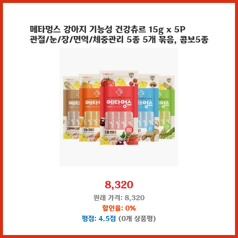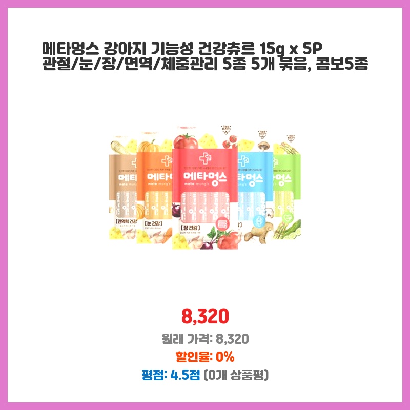 메타멍스 강아지 기능성 건강츄르 15g x 5P 관절/눈/장/면역/체중관리 5종 5개 묶음, 콤보5종