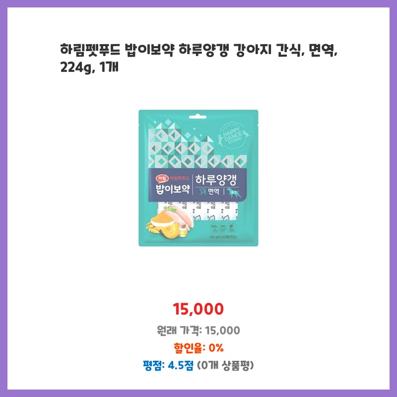 강아지간식, 하림펫푸드, 밥이보약, 하루양갱, 면역력강화, 건강간식, 강아지영양제