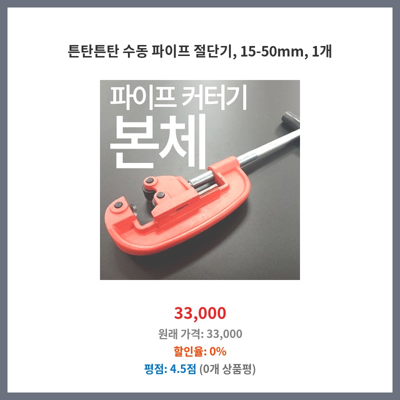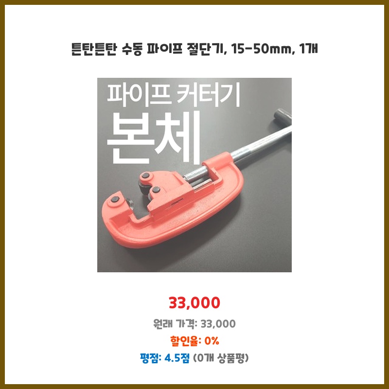 튼탄튼탄 수동 파이프 절단기, 15-50mm, 1개