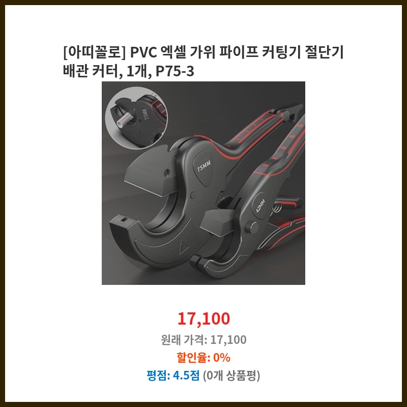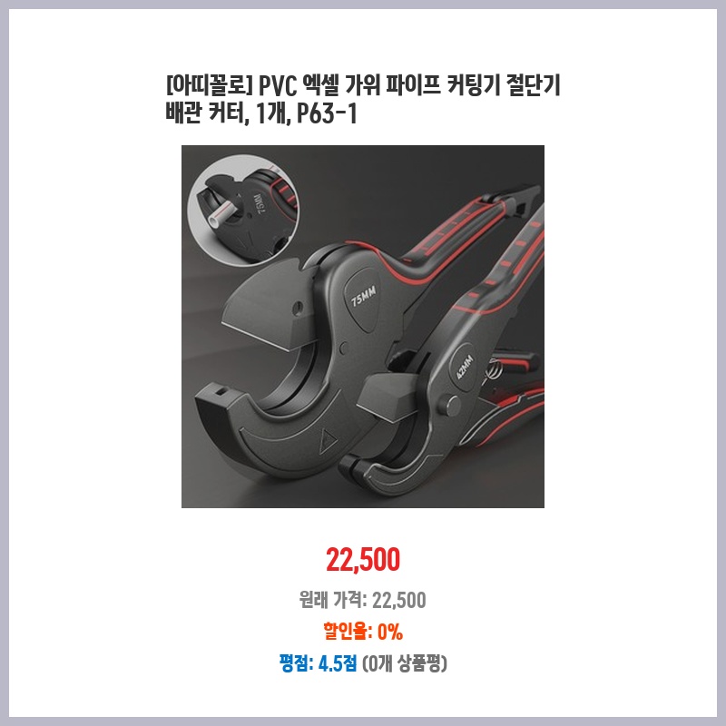 [아띠꼴로] PVC 엑셀 가위 파이프 커팅기 절단기 배관 커터, 1개, P75-3